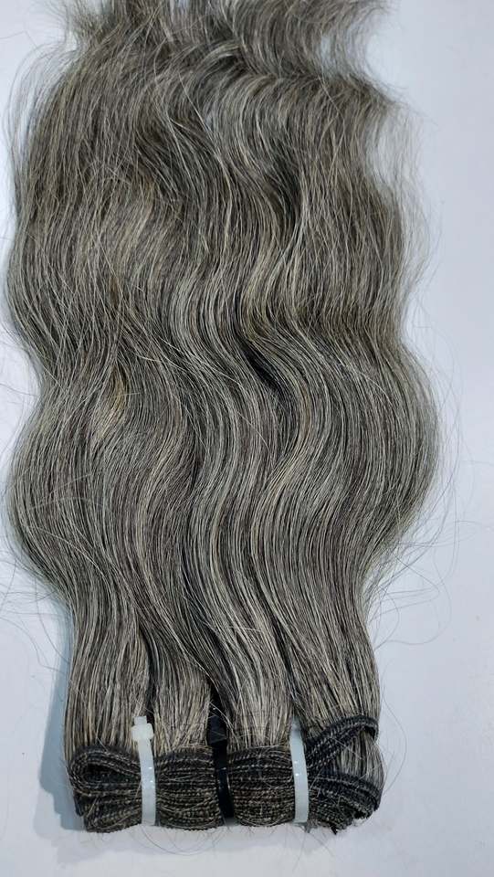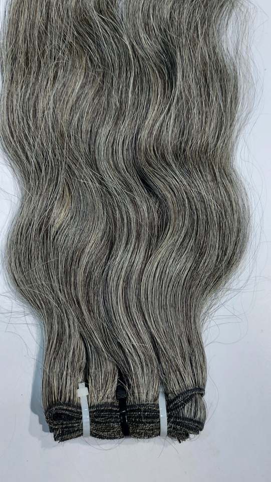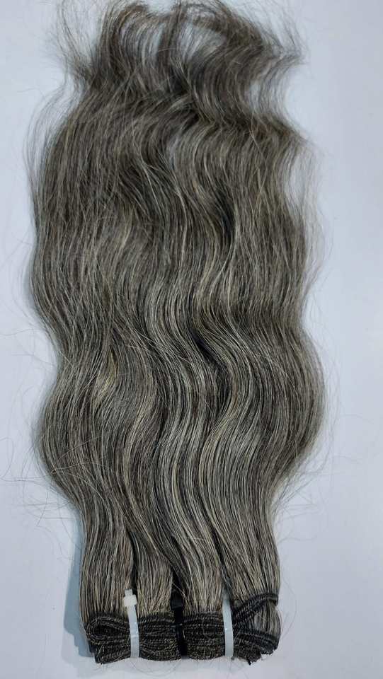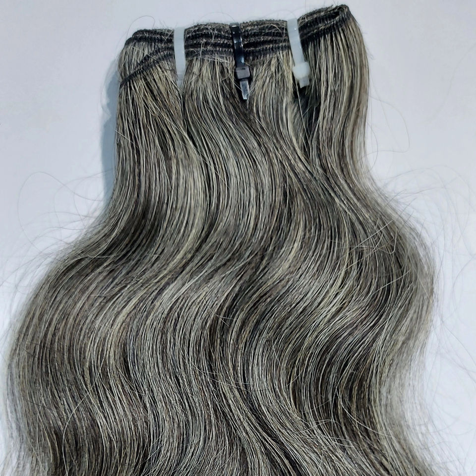 Cabello Humano Remy Indio 100% Natural Sin Procesar de Grado 12A # Extensiones de Cabello Ondulado Gris, Doble Trama, Todos los Colores, 100g/3.5oz, Venta al Por Mayor