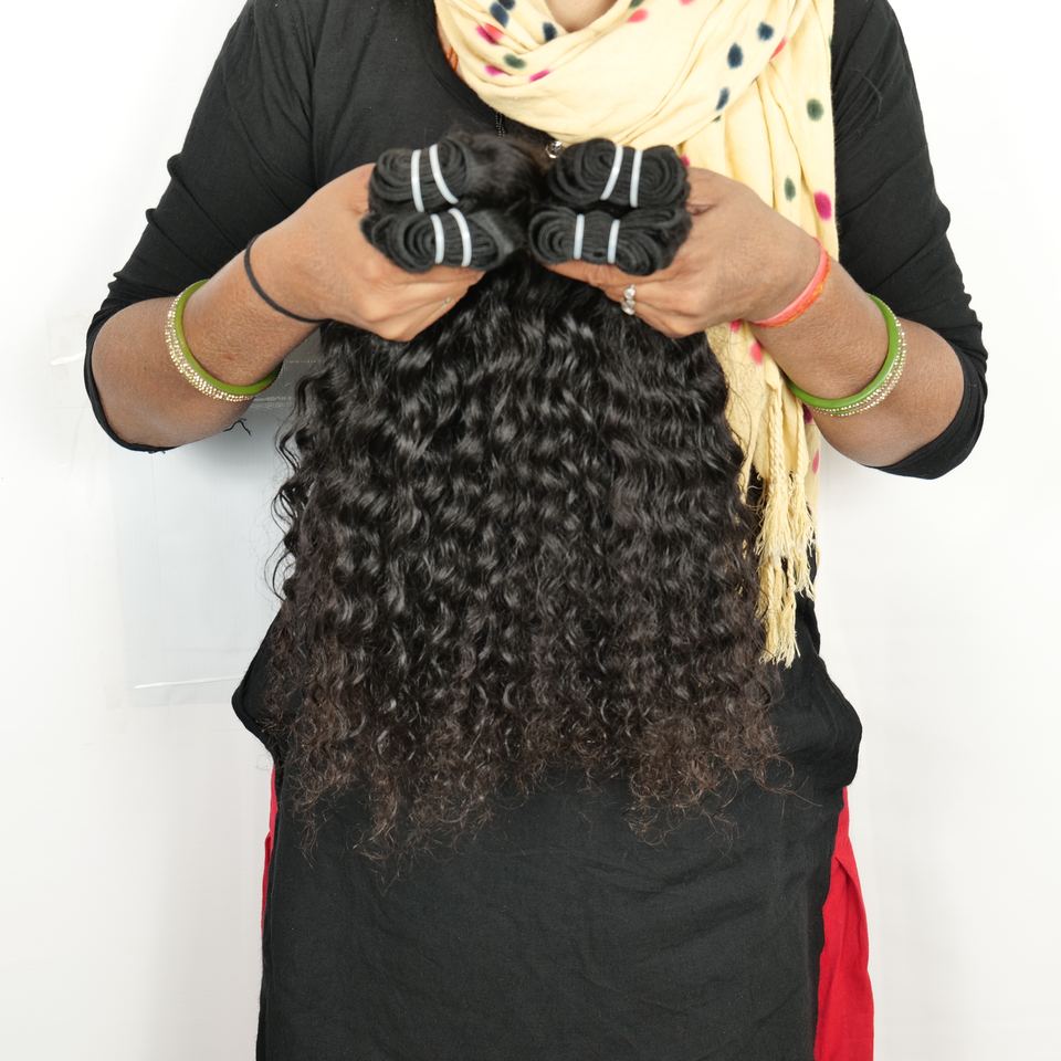 Extensiones de cabello humano indio virgen crudo 100%, proveedor de trama doble, paquetes naturales sin procesar, opciones de ondas de cuerpo recto rizado