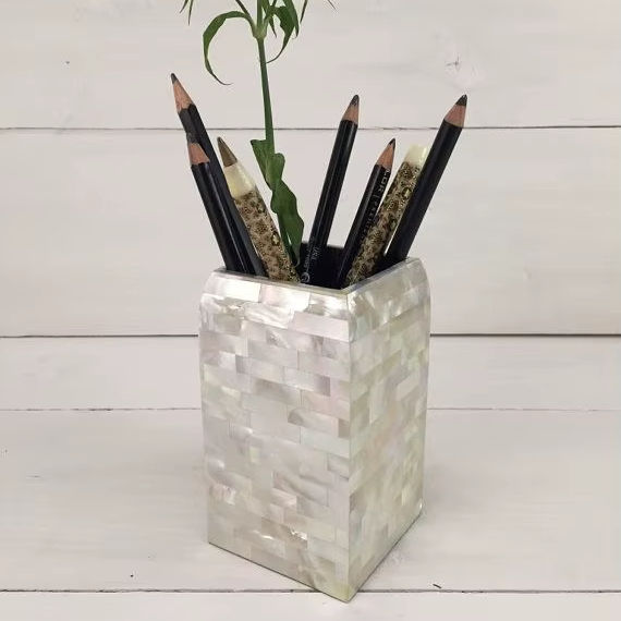 Portalápices 100% auténtico con incrustaciones de hueso, organizador de escritorio artesanal, para mesa, con incrustaciones de nácar