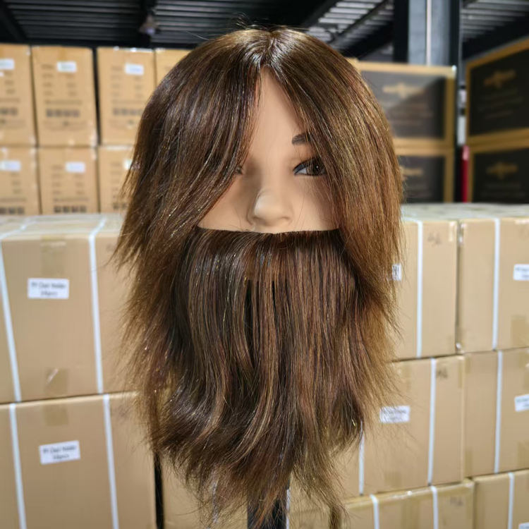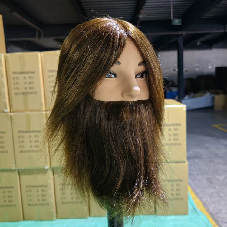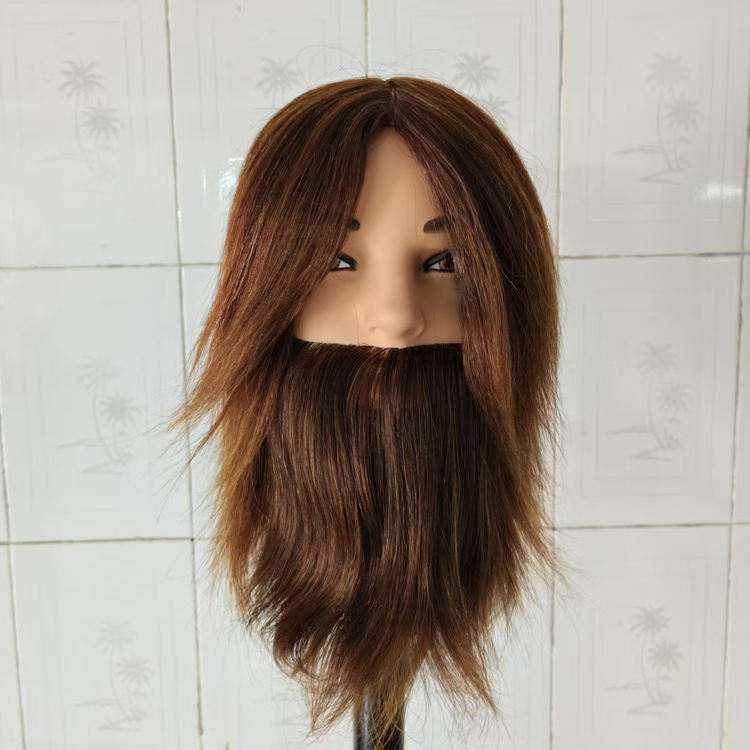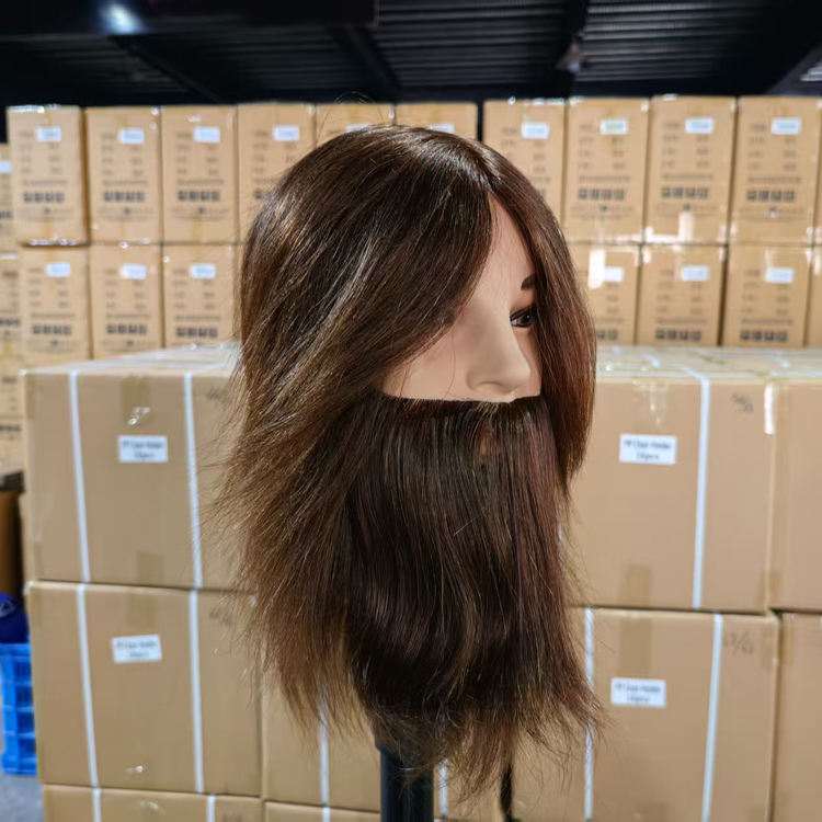 Cabeza de Maniquí de Cabello Humano 100% Real con Bigote para Entrenamiento de Peluquería, Cabeza de Práctica de Cabello Natural Masculino