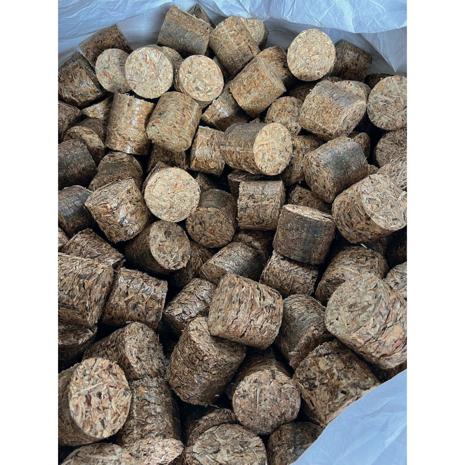 Briquetas de madera, fabricadas con 100% de madera reciclada,
