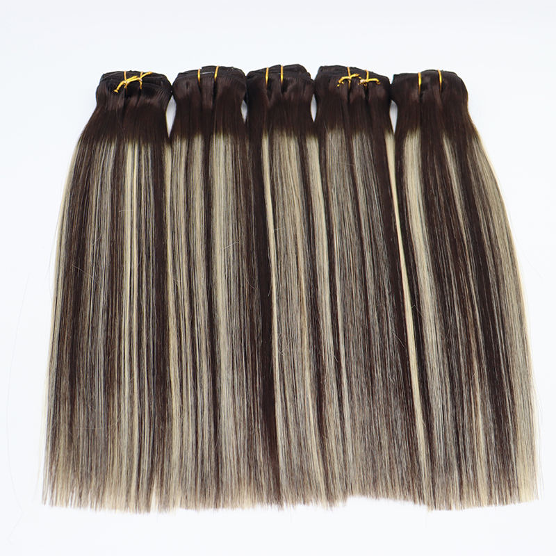 Extensiones de cabello con Clip Remy humano ruso 100%, venta al por mayor, Clip indio sin costuras Natural en extensión de cabello, precio de venta completo