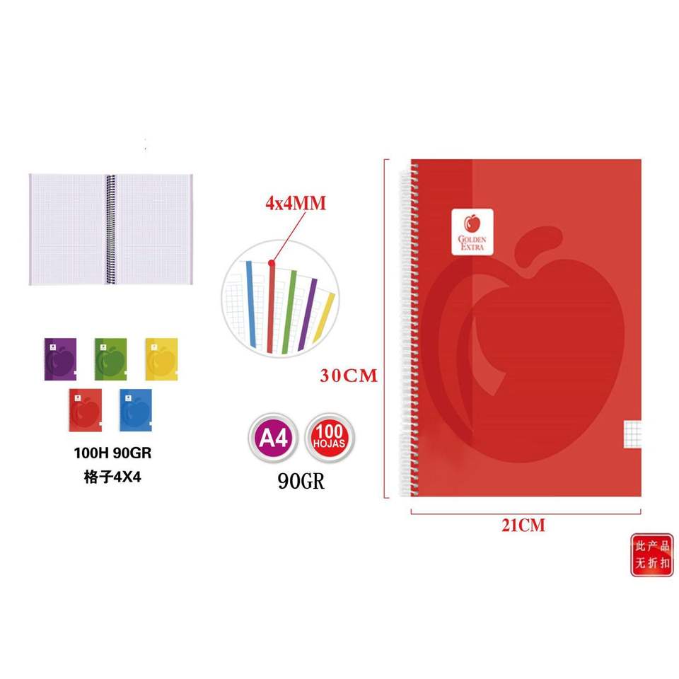 Cuaderno A4 de 100 hojas con tapa de plástico de 90gr con encuadernación térmica Funda de cuero para estudiantes Estilo de cubierta suave para uso escolar