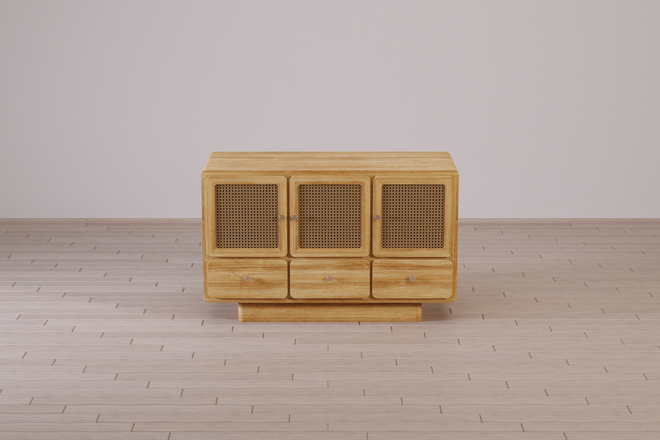 Aparador FCJ de cuatro puertas con diseño de patas cruzadas y de metal