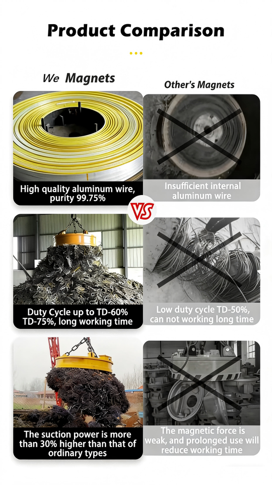 Electroimán Redondo de 380V con Capacidad de Carga de 100 Toneladas, Equipo de Elevación para Chatarra y Residuos