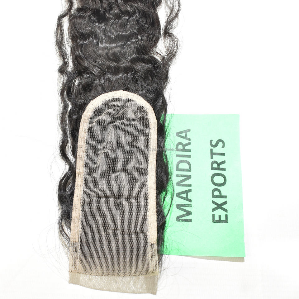 100% cutícula sin procesar alineada 2*6 HD cierre ondulado doble trama onda profunda templo indio extensiones de cabello humano
