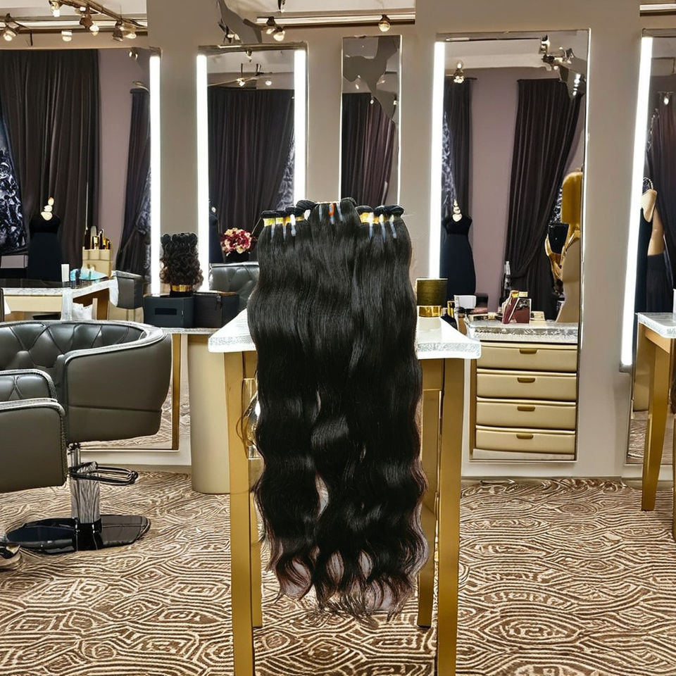 Extensiones de Cabello Remy 100% Sin Procesar, Doble Trama, Cabello Natural Indio, Color Natural, Lujosas, Sedosas, Lisas y Onduladas, de un Solo Donante