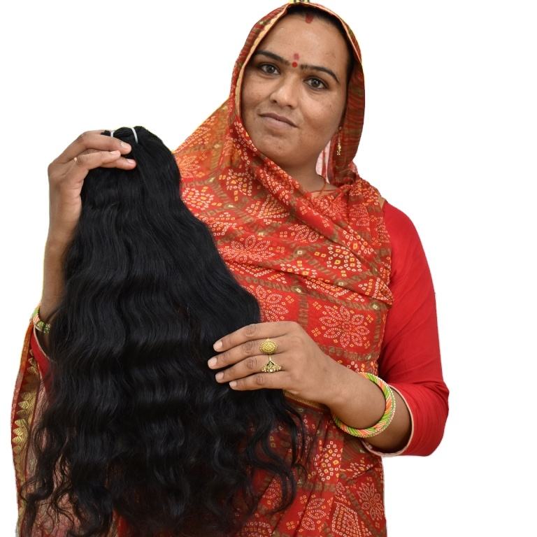 Extensiones de cabello virgen Remy sin procesar 100%, mechones ondulados de Color negro sedoso, Templo Vietnamita, proveedor indio, cabello humano