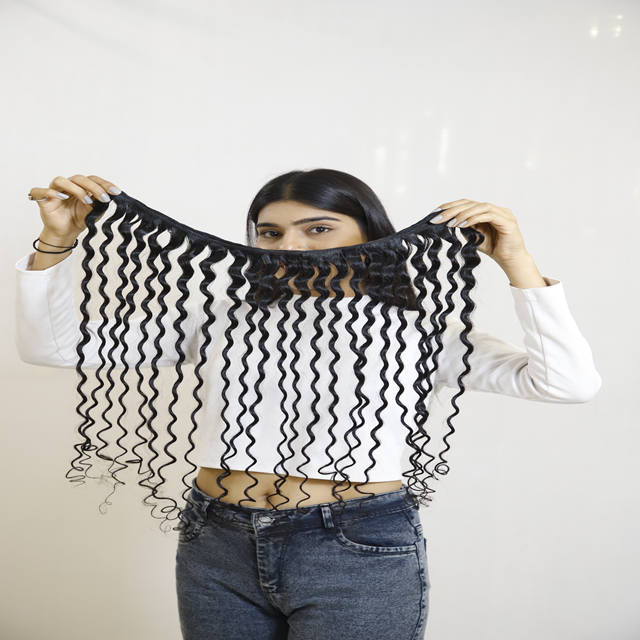 Extensión de cabello humano ondulado indio crudo Virgen sin procesar 100% con color natural