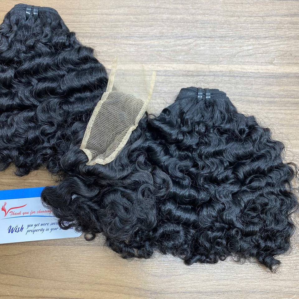 Cabello Humano Vietnamita 100% Natural, Rizado y Ondulado, Color Negro Natural, Proveedor de Cabello Virgen