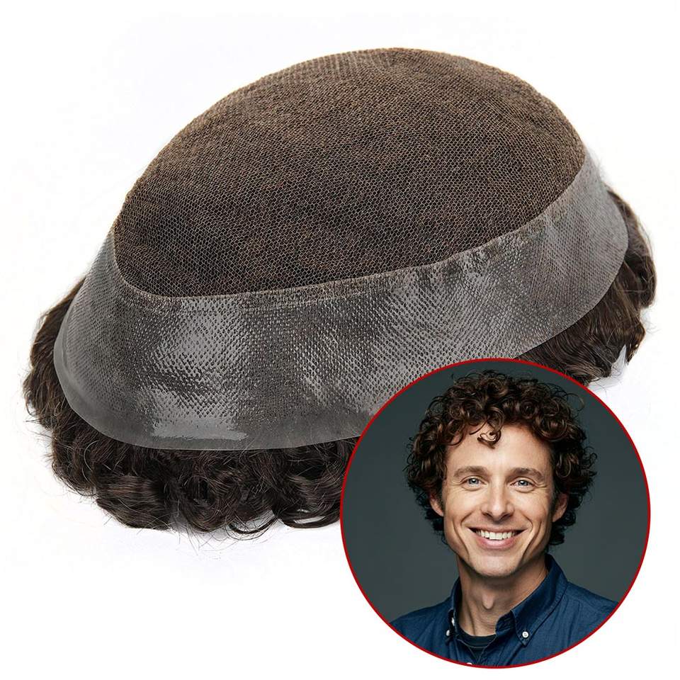 Peluca de tupé de 6 pulgadas recta negra Natural de pelo indio virgen 100% con Base de seda estilo de onda profunda postizo permanente para hombre