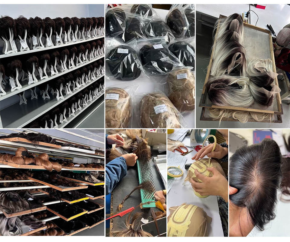 Cabello gris:Use cabello sintético para porcentajes grises 50%, cabello humano para ≥ 60%