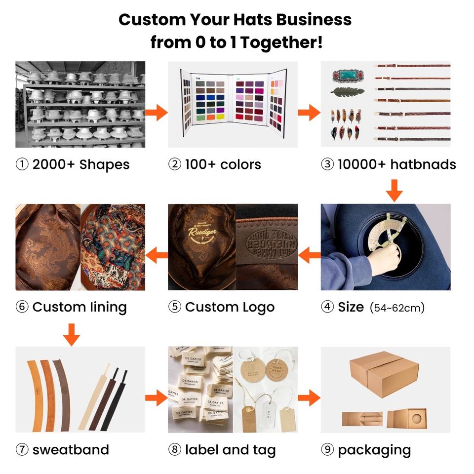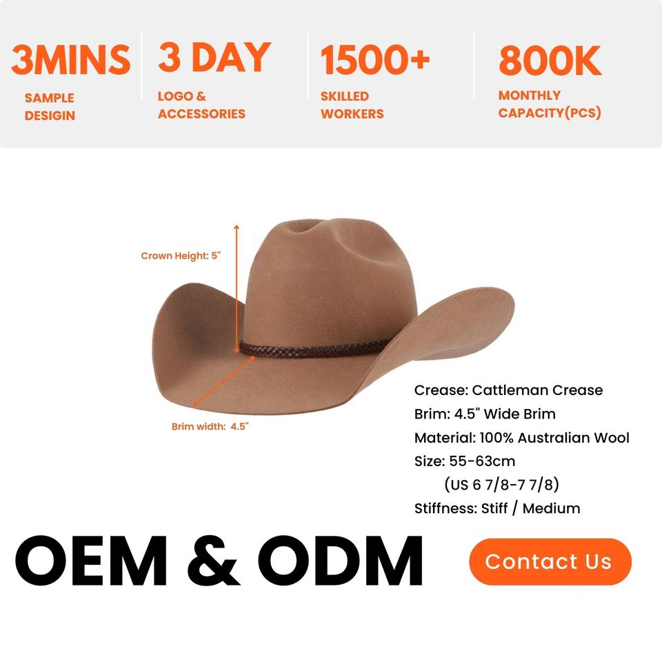 Sombreros Vaqueros Personalizados de Estilo Occidental, 100% Lana, Color Marrón Avanzado, con Ala Ancha para Viajes y Fiestas, Venta al por Mayor