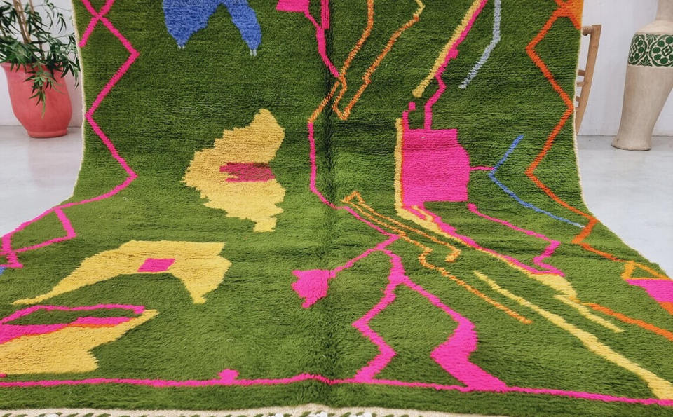 Alfombra marroquí hecha a mano de lana 100%, tamaño 8x10, alfombra naranja y azul anudada a mano para decoración del hogar, alfombra abstracta a precios al por mayor