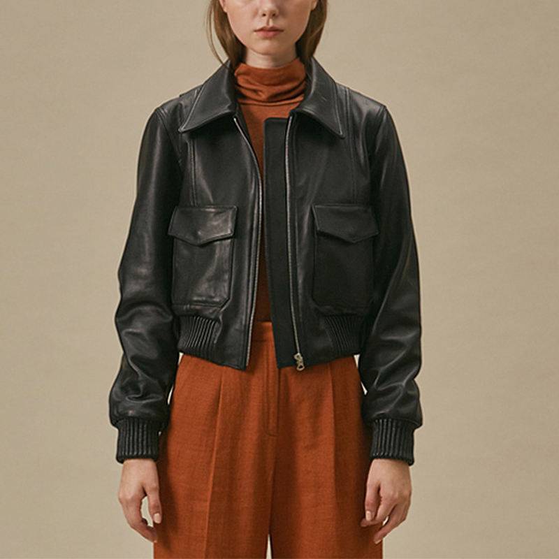 100% chaqueta de cuero de la mejor calidad para mujer, chaqueta de béisbol delgada transpirable de algodón corto de cuero, chaqueta informal simple