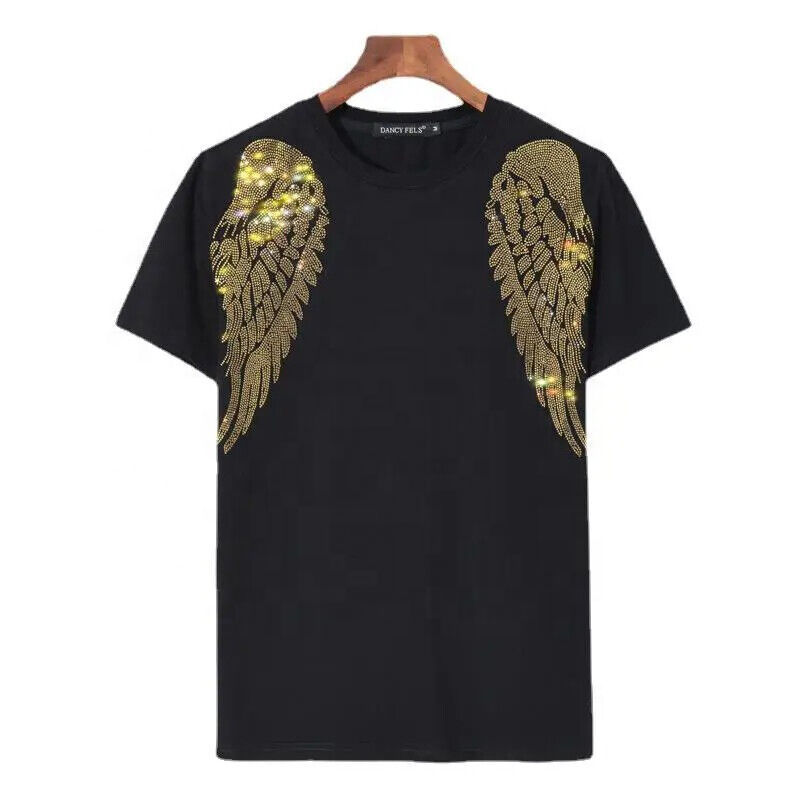 100% algodón, camiseta para hombre, ajuste holgado, camiseta estampada para hombre, camiseta de precio razonable para niño, camiseta con diamantes de imitación, OEM de alta calidad