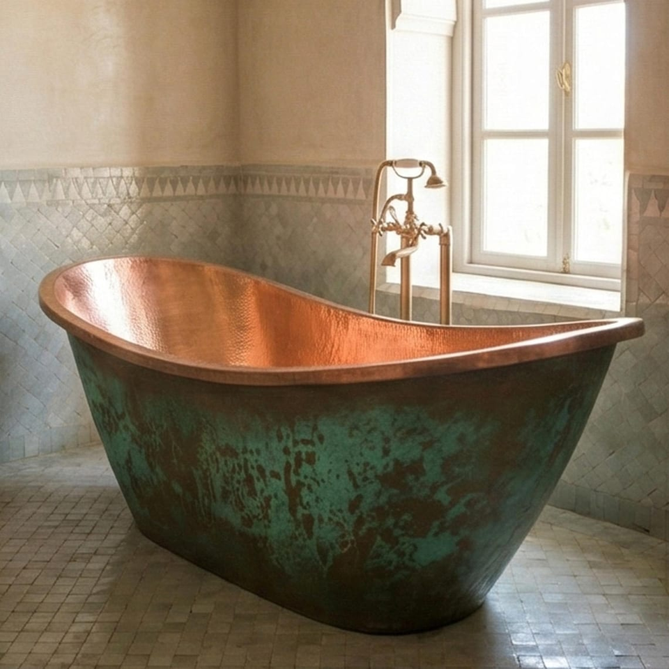 Bañeras de cobre 100% puro, bañeras de cobre de lámina sólida, bañeras de cobre de calibre grueso, bañeras de cobre martilladas a mano