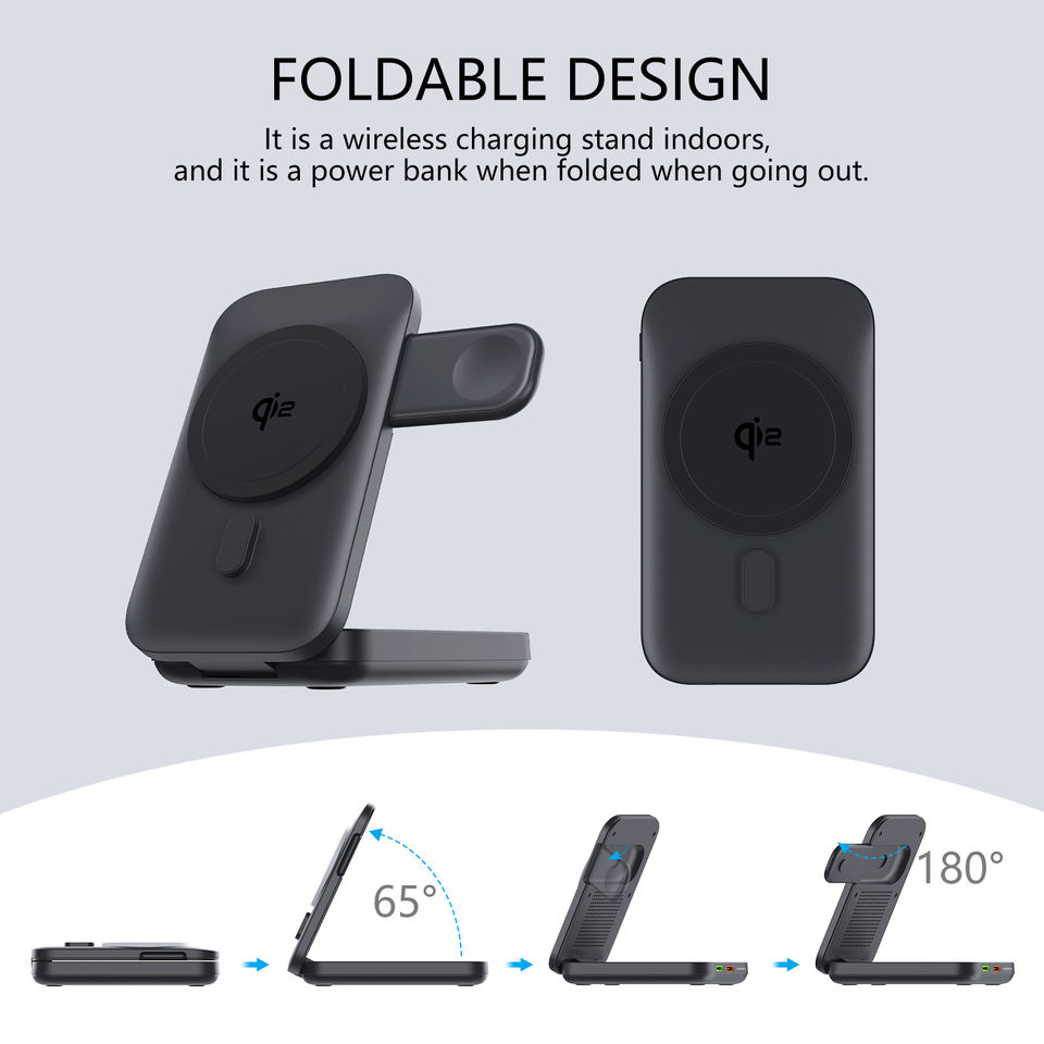 10000mAh Power Bank iPhone Wireless Power Bank Soporte portátil plegable 15W Cargador inalámbrico magnético Paquete de batería