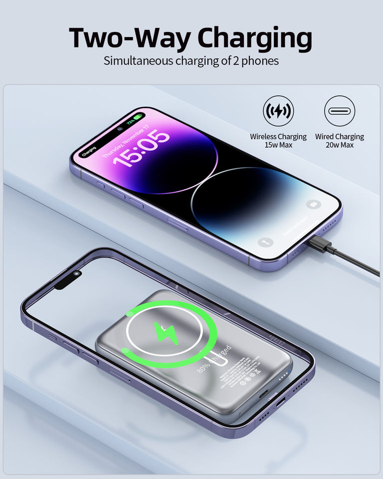 Banco de energía magnético inalámbrico de 10000mAh, cargador rápido, lámpara LED, USB C, batería externa de repuesto para iPhone Xiaomi