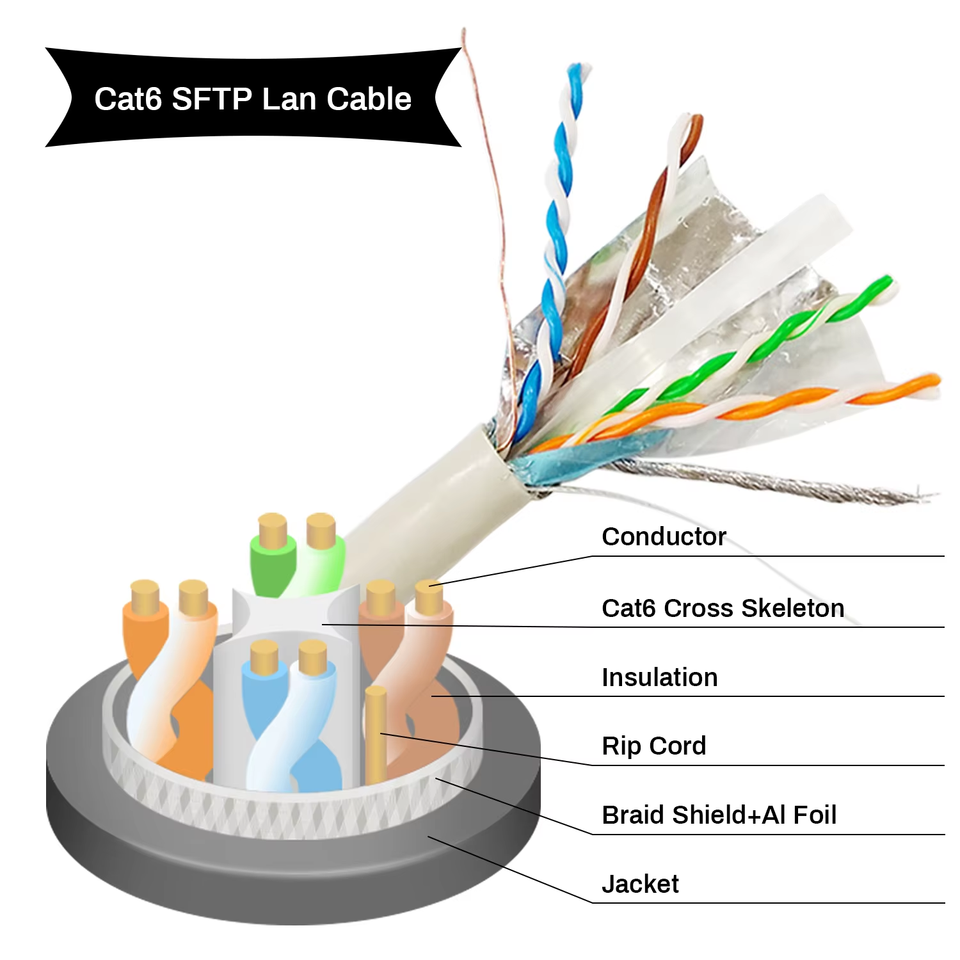 Cable de Red Cat 6 para Exteriores de 1000 pies (305m), PVC + PE, Exterior de Cobre, Resistente al Agua, CCA, UTP, SFTP, Cat6 LAN