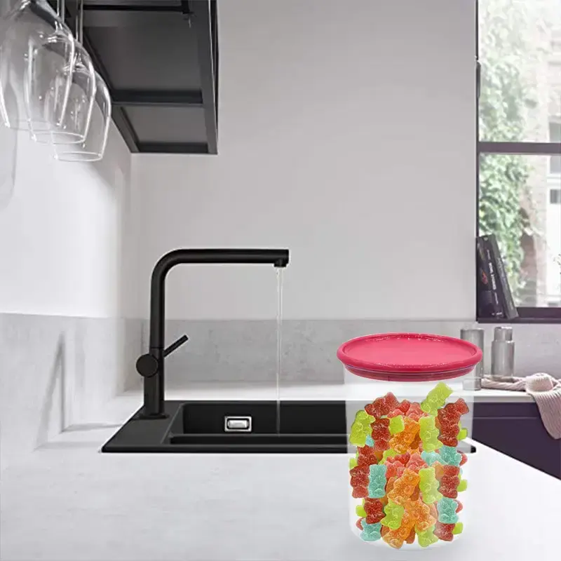 Recipiente redondo de plástico transparente de 1000ml con tapa, tarro de almacenamiento multiusos para cereales y especias