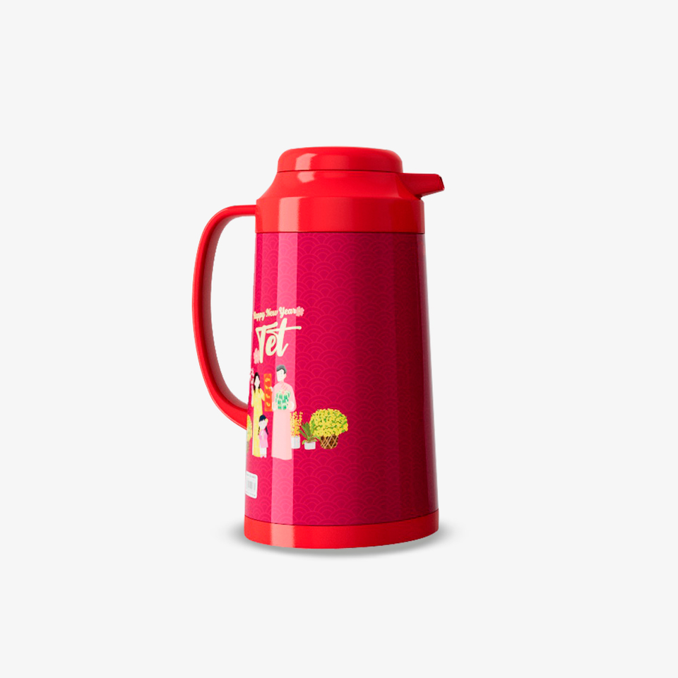 Material:Cubierta de termo de acero estañado, botón de plástico PP
