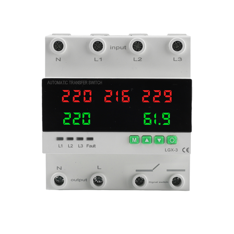 100A ATS Trifásico 2/3/4 Cables 3/4/5 Pantallas digitales Interruptor de transferencia montado en riel Igual a protectores de voltaje