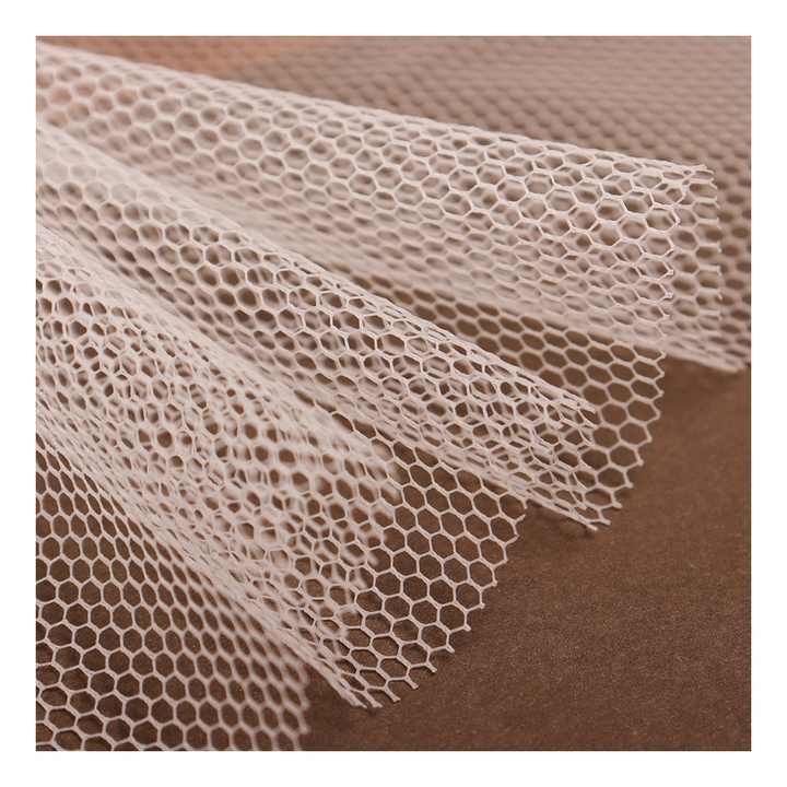 Tela de malla hexagonal rígida de poliéster 100D 100% con memoria, color blanco, para forro de vestidos de novia y niñas