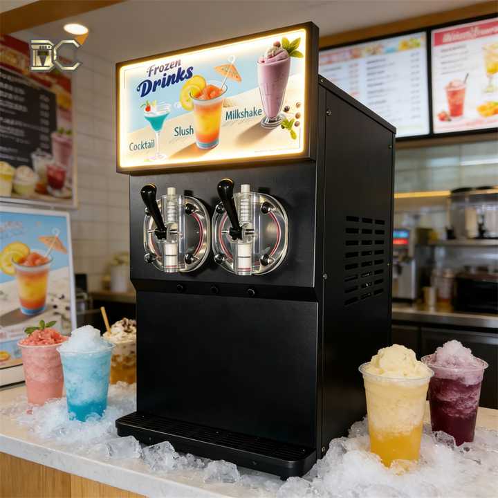 Máquina de granizados de grado comercial de 100L/H, 2 tanques, máquina de granizados industrial eléctrica para bebidas congeladas, para negocios de bebidas.