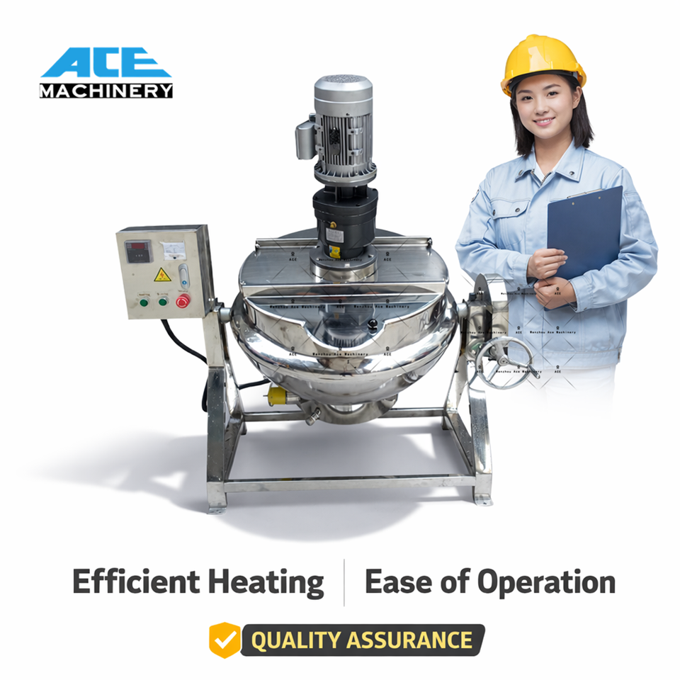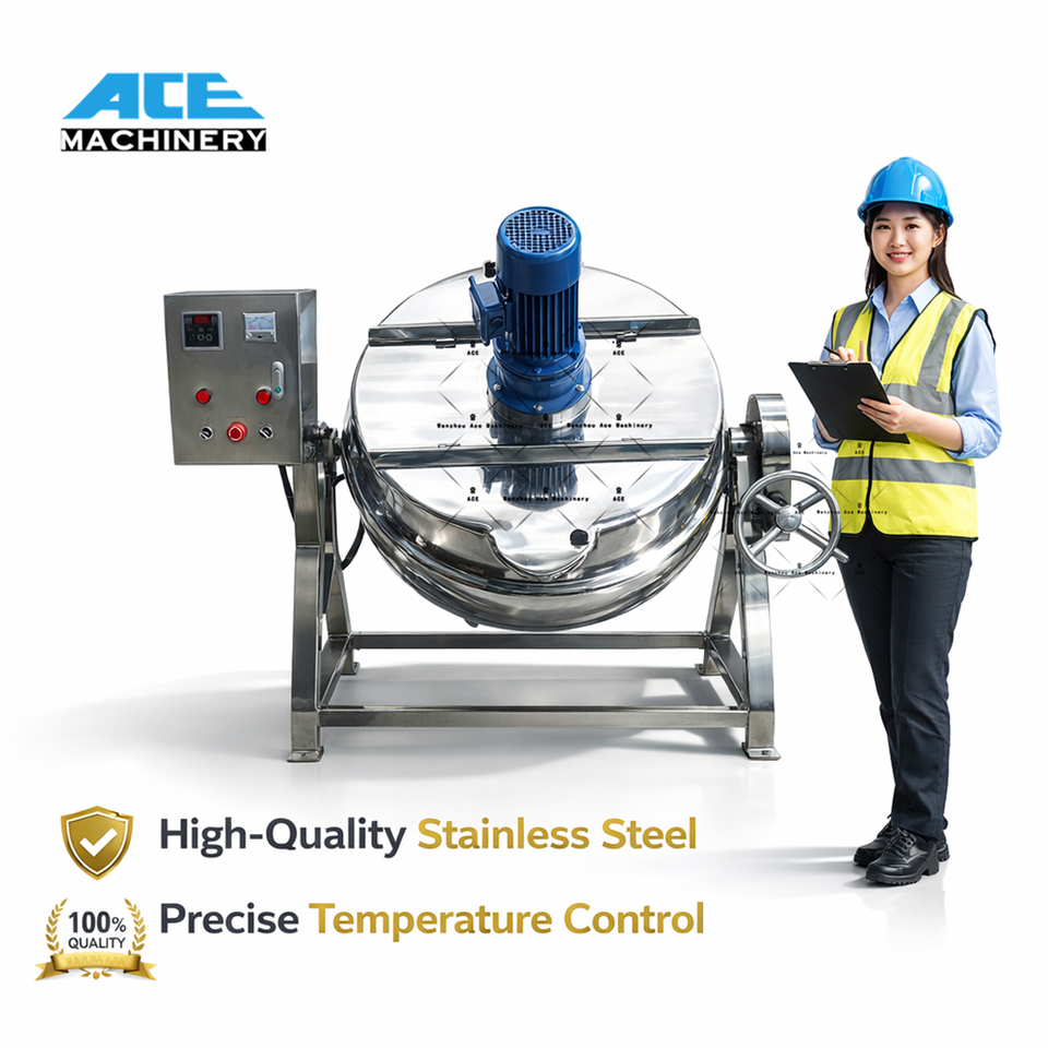 Olla Industrial de Acero Inoxidable de 100L con Chaqueta, Máquina de Cocina Comercial, Olla Basculante con Chaqueta, Calentador Eléctrico con Mezclador