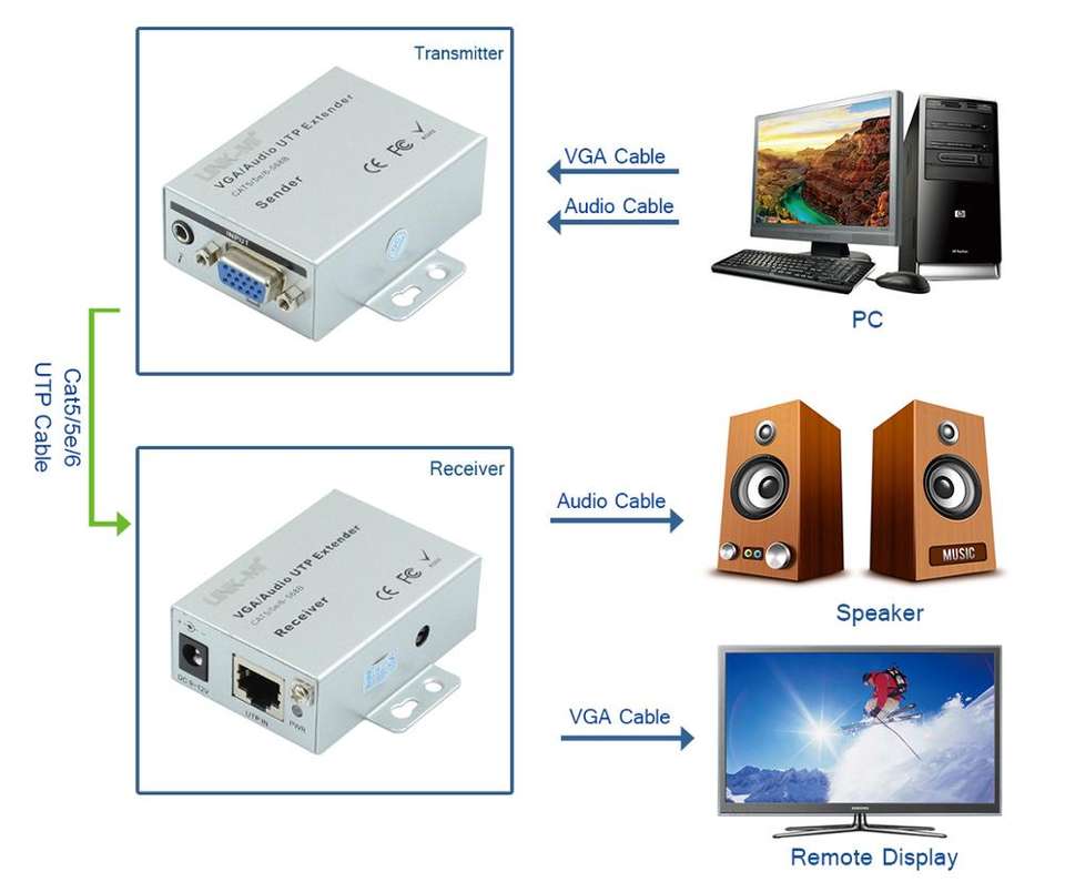 Extensor Adaptativo VGA de Audio y Video de 100M, Compatible con Monitores VGA Locales y Remotos, Solución Ideal para Aplicaciones de Señalización Digital