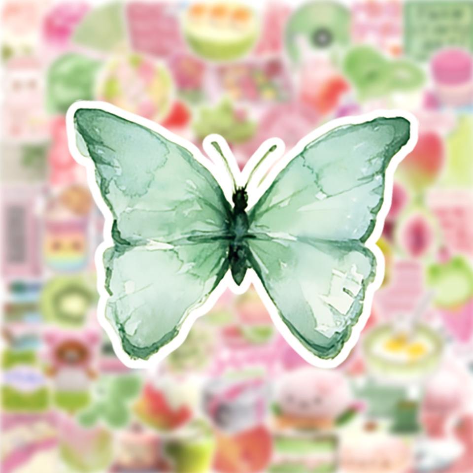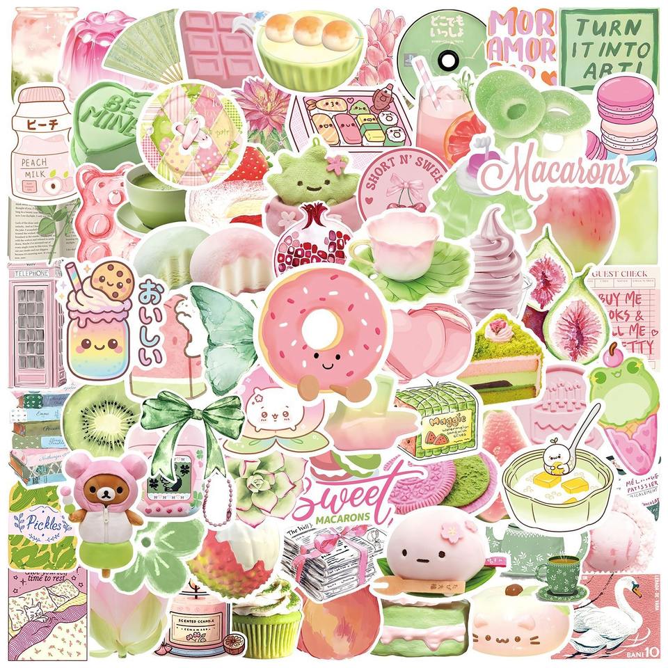 100 pegatinas de PVC impermeables con diseño de dibujos animados, bonitas, rosas y verdes, estilo VSCO, con grafiti, troqueladas e impresas para decoración de portátiles, botellas y comida Kawaii