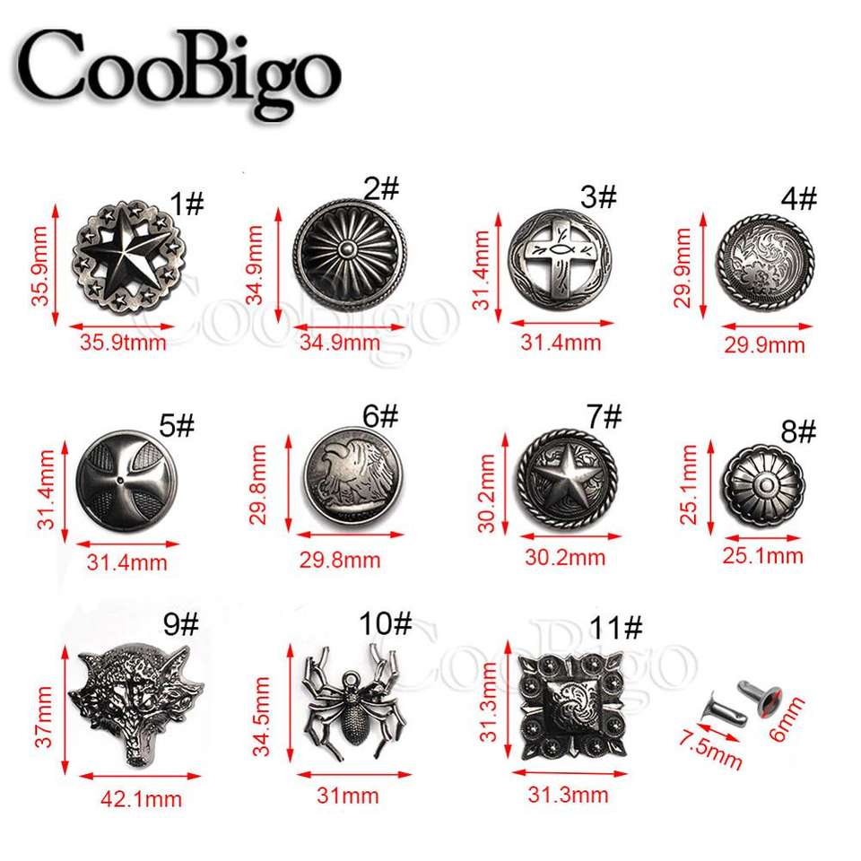 Conjunto de tachuelas de remache de Metal, tachuelas remachadas Punk, bolsos artesanales de cuero, cinturón, zapatos, accesorios de costura DIY, Lobo araña y Estrella, 100 Uds.