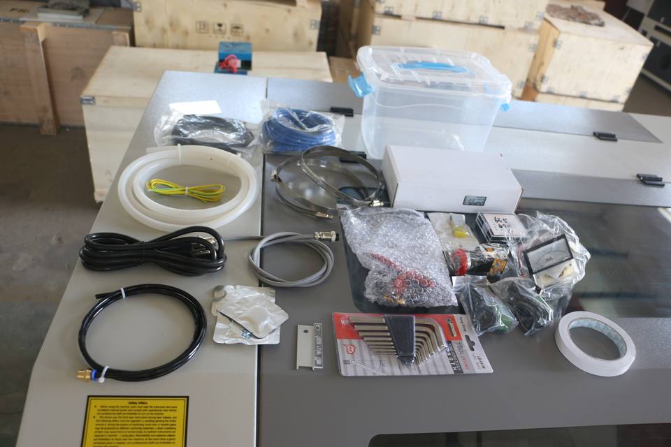 100W 9060 1080 máquina de grabado láser Auto Focus Chuck giratorio S & A CW5000 550W ventilador Leadshine 57 Motor para caucho de piedra de vidrio