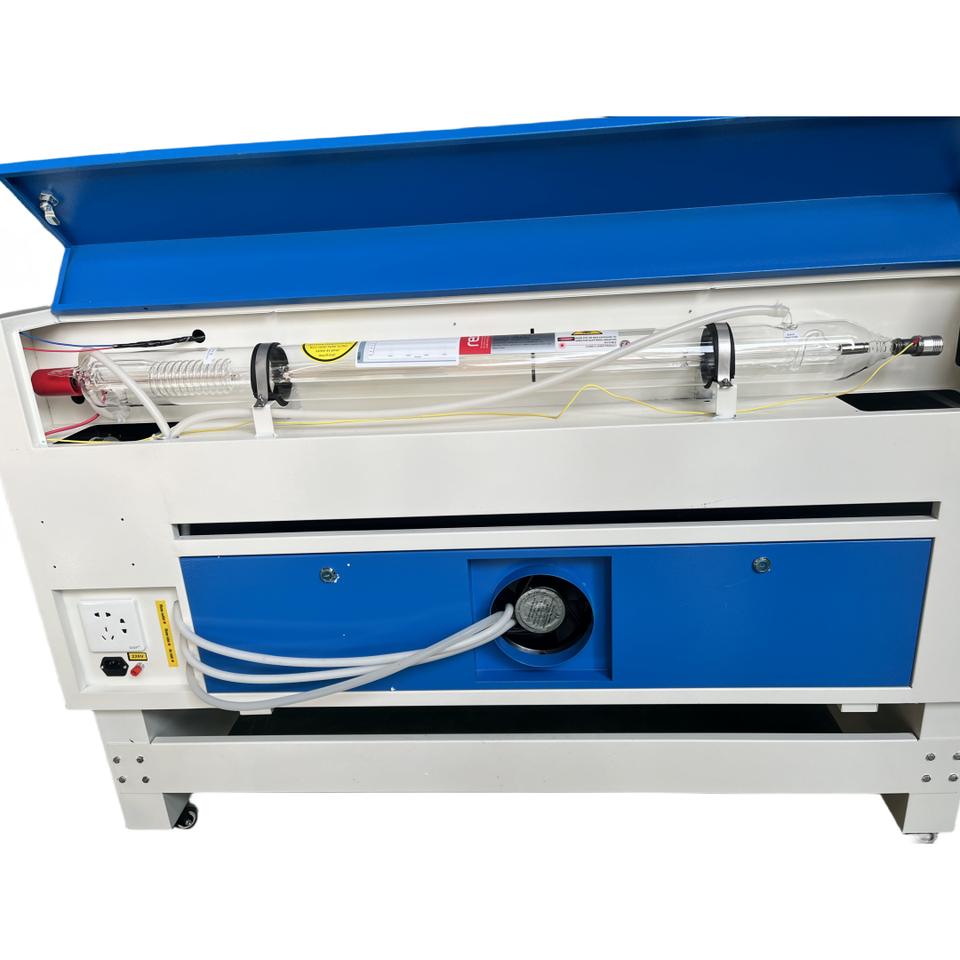 Máquina de corte por láser China de 100W 9060 con Reci W4Tube Ruida RD6445S Control Módulo de riel de guía deslizante interno Enfriador CW5000
