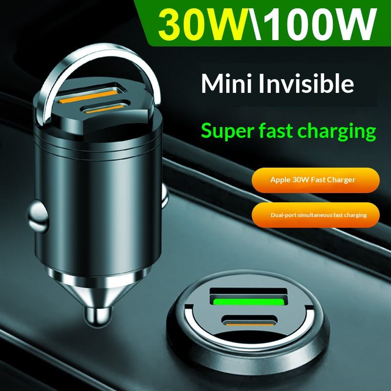 Cargador de Coche Invisible de 100W con Doble Puerto, Adaptador de Encendedor de Cigarrillos con Carga Súper Rápida Oculta, Cargador Universal para Teléfono Móvil