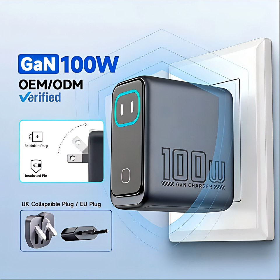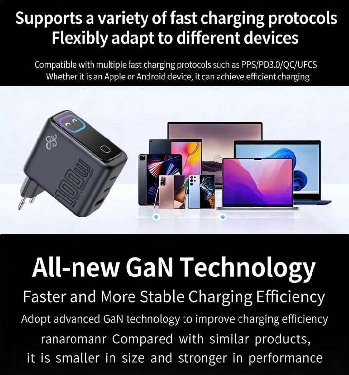 Cargador GaN de 100W con Carga Rápida PD y Pantalla Inteligente, Adaptador de Viaje Plegable para EE. UU. y UE, para Teléfonos Xiaomi y Huawei, Cargador Tipo C para Laptop