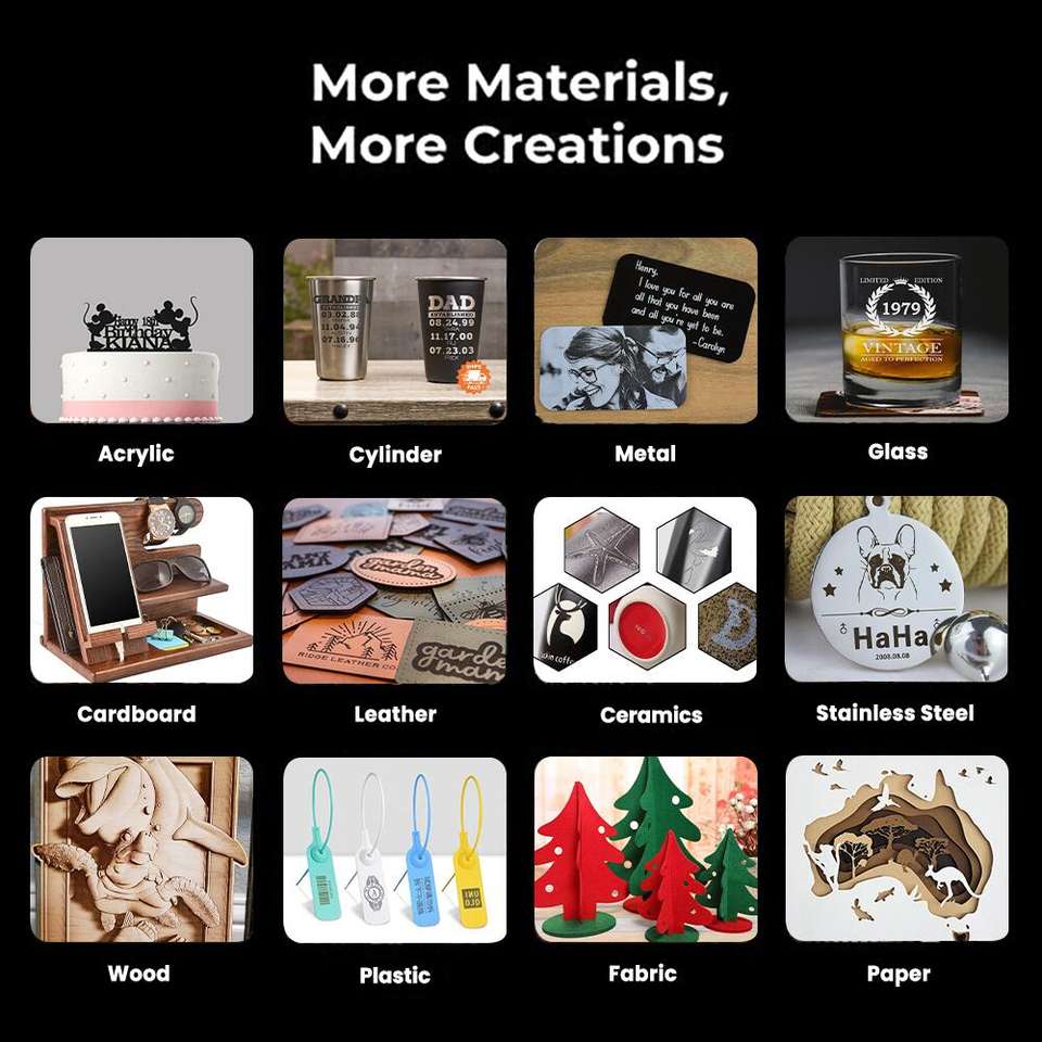 Acrílico, De cuero, MDF, Metal, Papel, Plástico, Contrachapado, Caucho, Piedra, MaderaMaterial aplicable