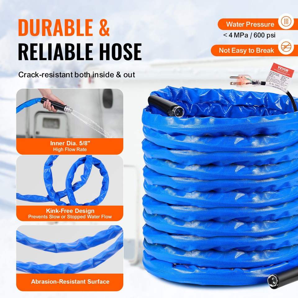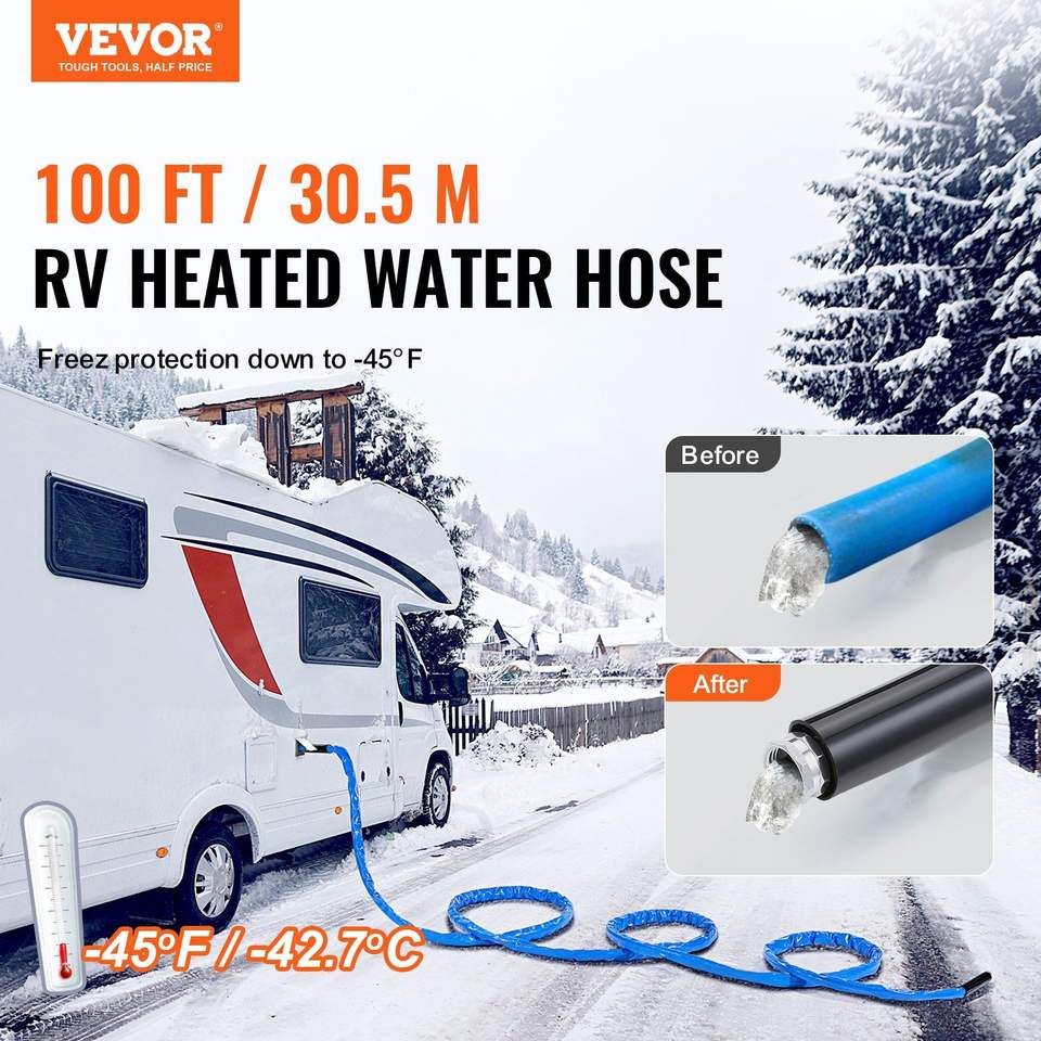 Manguera de Agua Calefactable para RV de 30 Metros con Cubierta Corrugada, Sistema Autorregulable Anticongelante a 45 Fahrenheit para Accesorios Exteriores