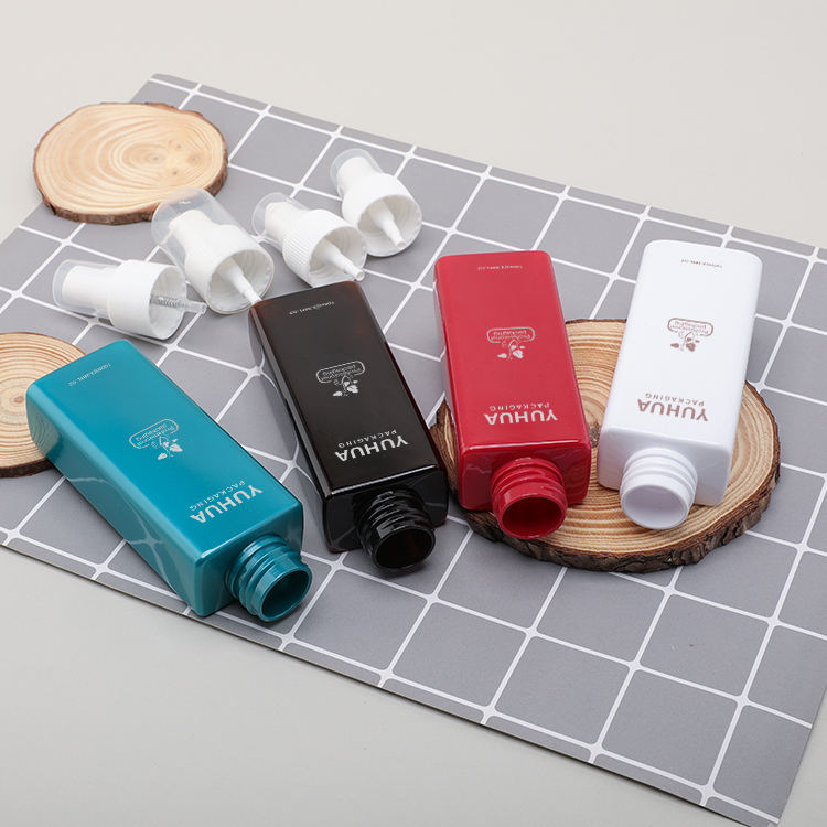 Botella de PET Cuadrada de 100 ml con Bomba Dosificadora para Crema Facial, Tónico para el Cuidado de la Piel y Aceite Corporal - Botella Vacía con Color Personalizado