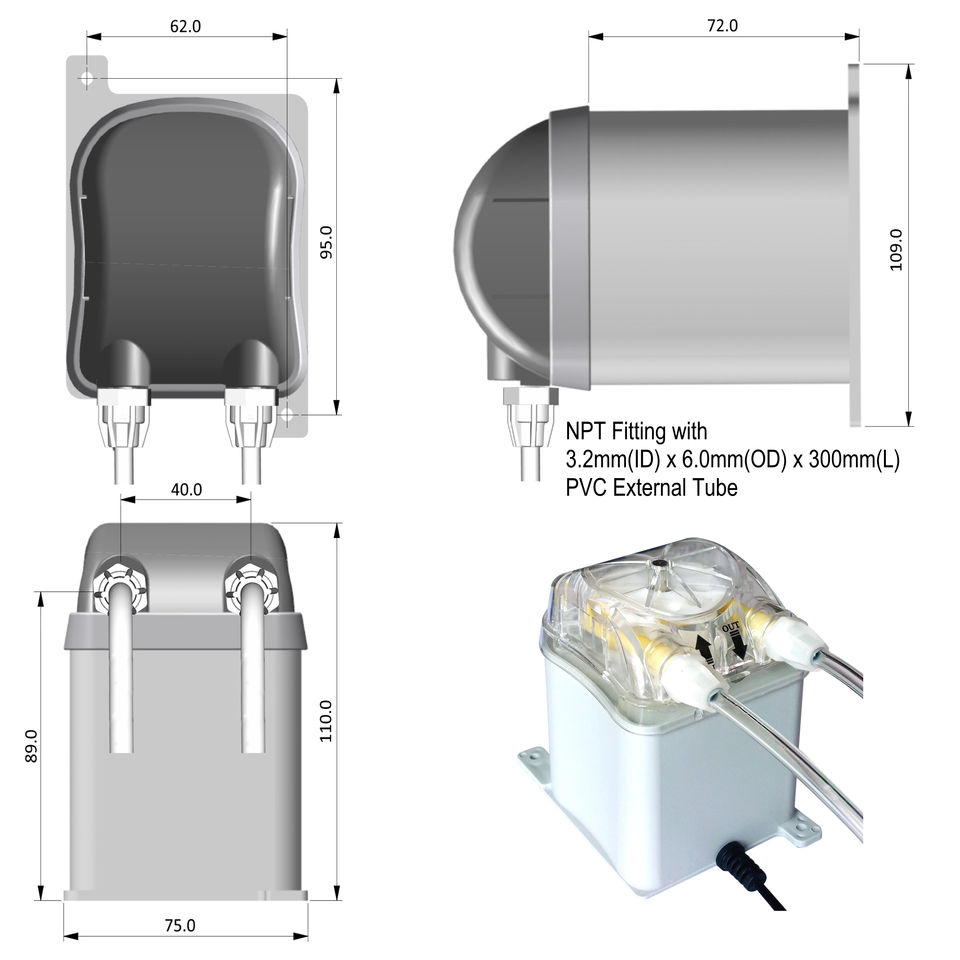 Tamaño de la salida:Accesorios NPT con tubo externo de 3,2mm(ID)