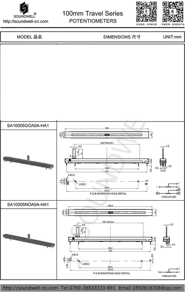 Nombre del producto:Potenciómetro Deslizante de 100 mm de Recorrido