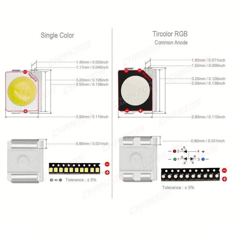PLCC2 (2PIN):Blanco caliente/Blanco/rojo/amarillo-verde/azul/amarillo/naranja