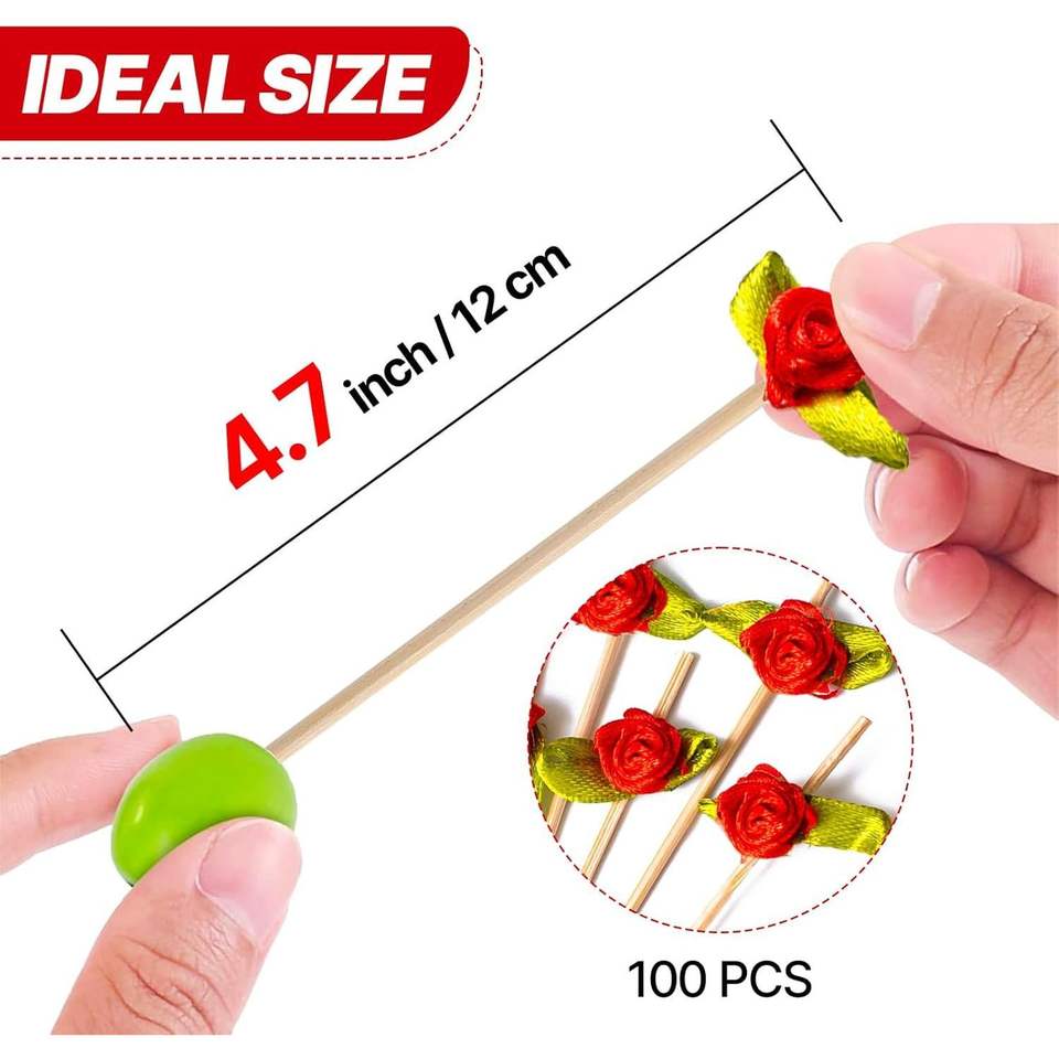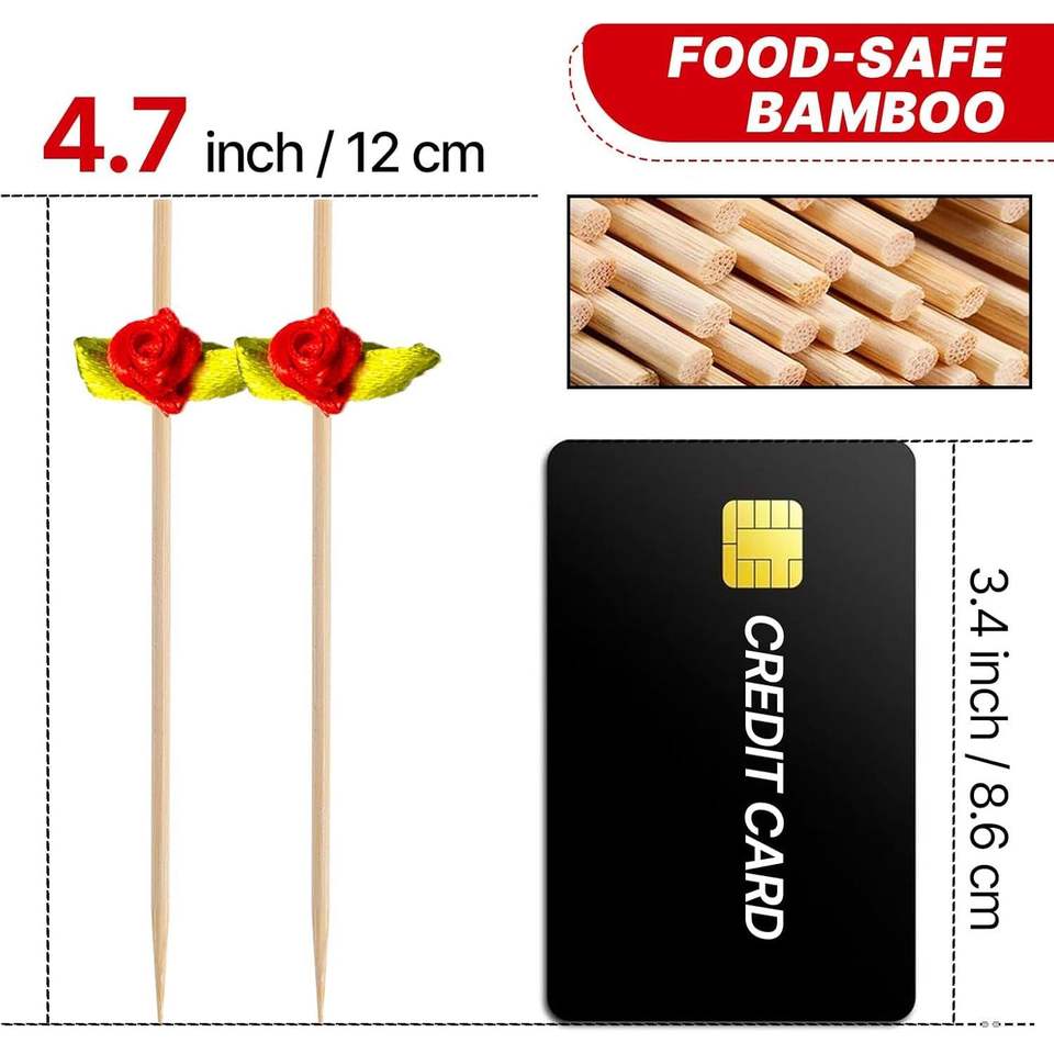 100 Palillos de Bambú de 4.7 Pulgadas para Cócteles, Palillos Decorativos con Diseño de Rosa Roja para Aperitivos, Bebidas y Frutas para Fiestas