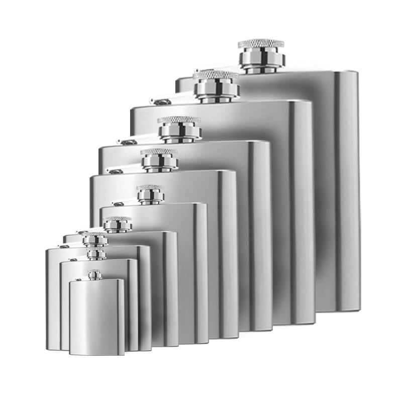 100 Uds logotipo personalizado diferente capacidad masculino Alcohol whisky vino botella bolsillo negro portátil Acero inoxidable Petaca