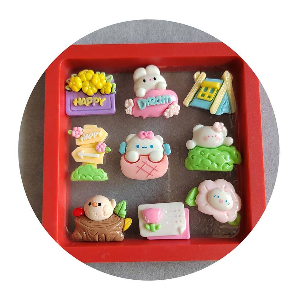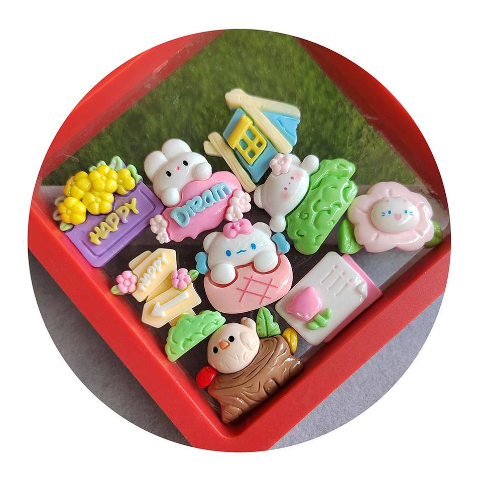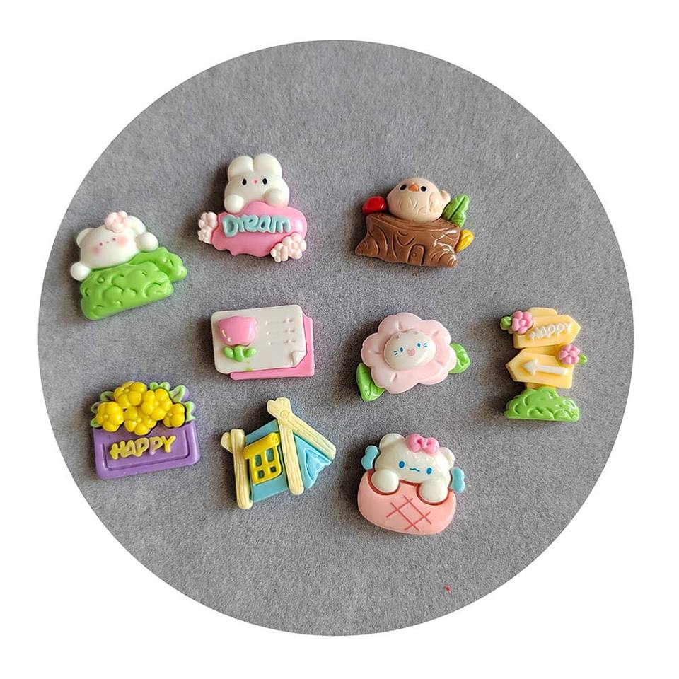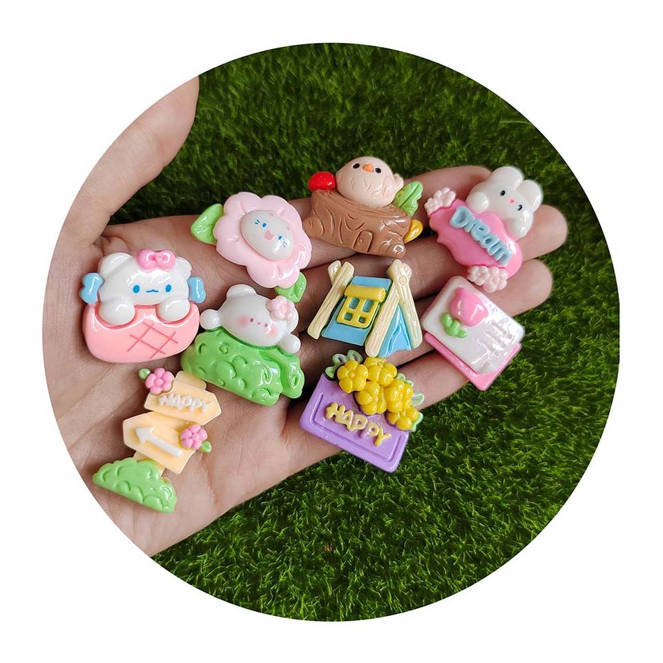 100 piezas hoy popular kawaii dibujos animados conejo tienda signos direccionales espalda plana cuentas de resina ajuste hacer DIY slime Decoración
