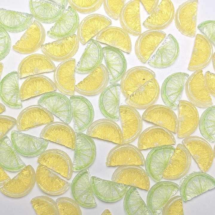 100 Uds rodajas de limón de resina Mini rebanadas de frutas Flatbacks adornos artesanales cabujón para álbum de recortes DIY lazo para el pelo Deco