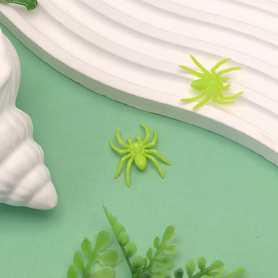 100 Uds pequeñas arañas de simulación de Halloween Mini juguetes de plástico resina Micro ornamento casa de muñecas muebles decoración del hogar 18*22mm