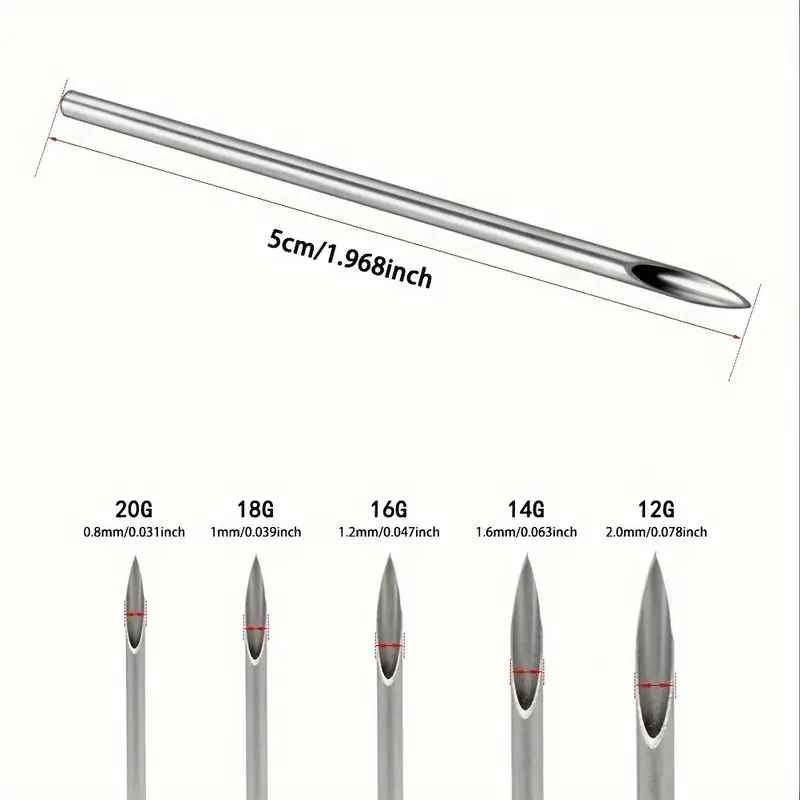 Caja de 100 Agujas Desechables para Perforaciones y Tatuajes, Calibres 10/12/14/16/18/20G, para Perforaciones de Oreja, Nariz, Labio y Cuerpo