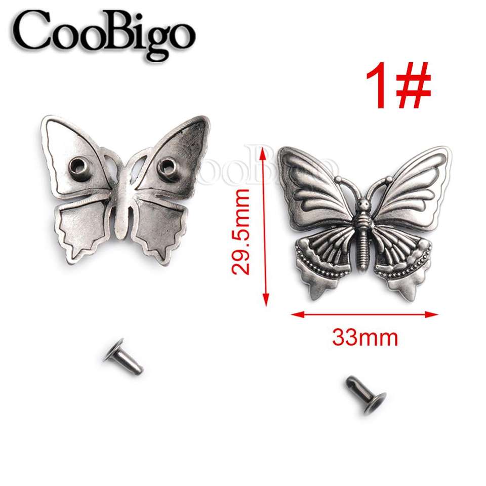 Conjuntos de Conchos de Pewter, tachuelas de remache, pinchos Punk Rock, cuero, artesanía, zapatos, bolsa, Collar de mascotas, decoración artesanal, Escudo de estrella de mariposa, 100 Uds.